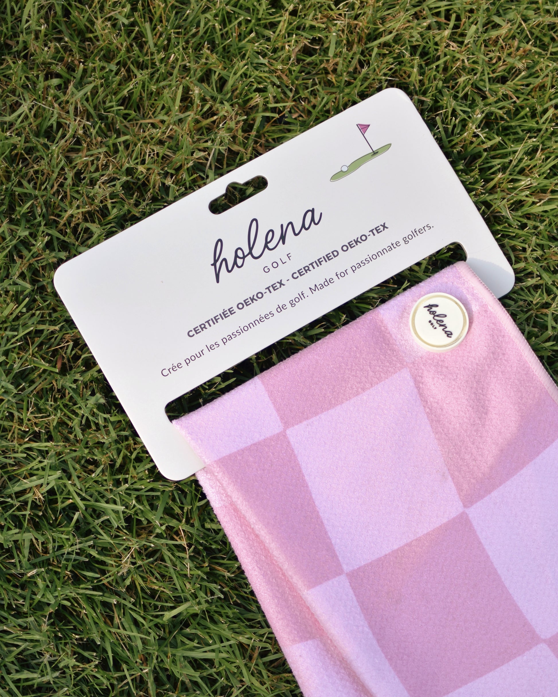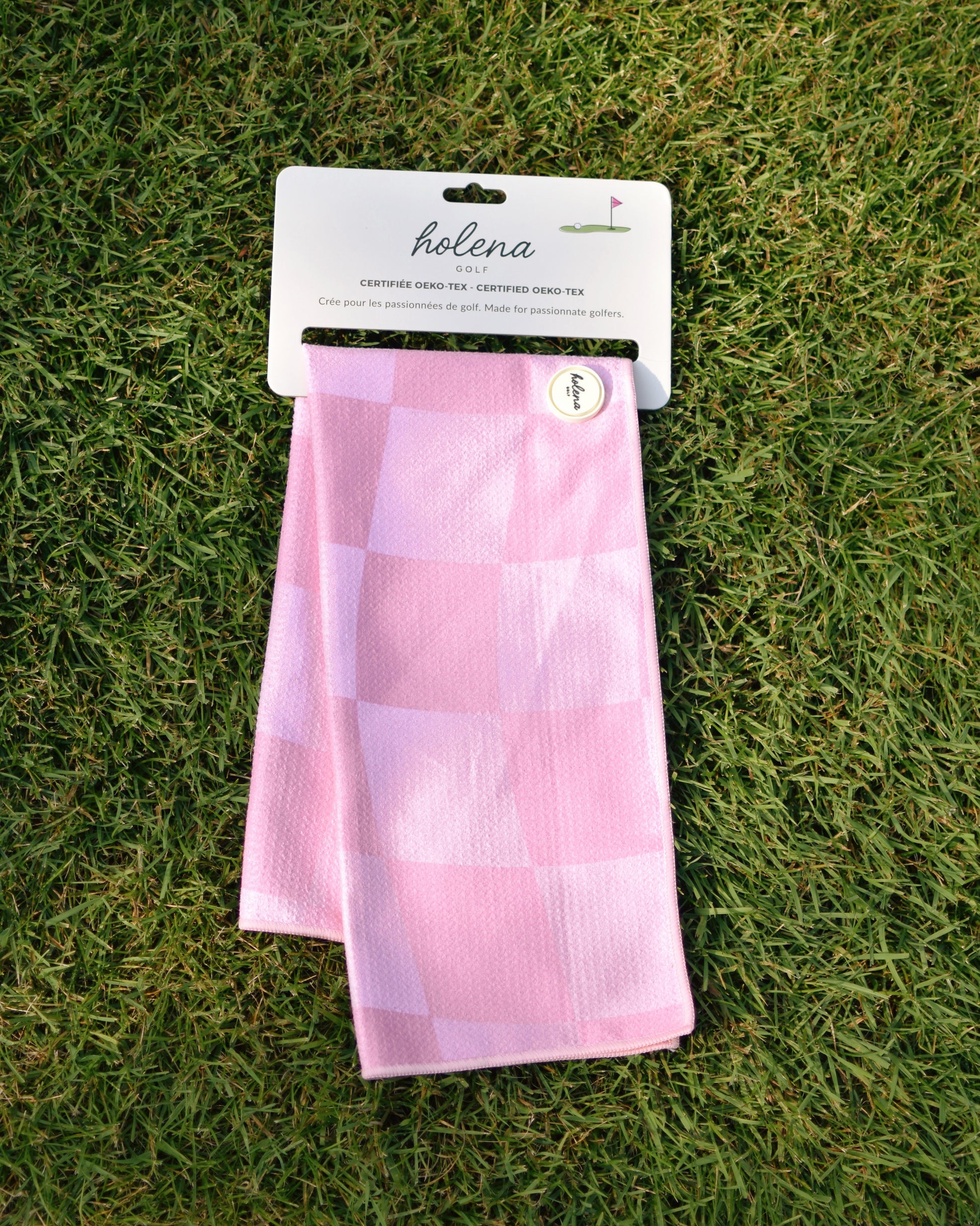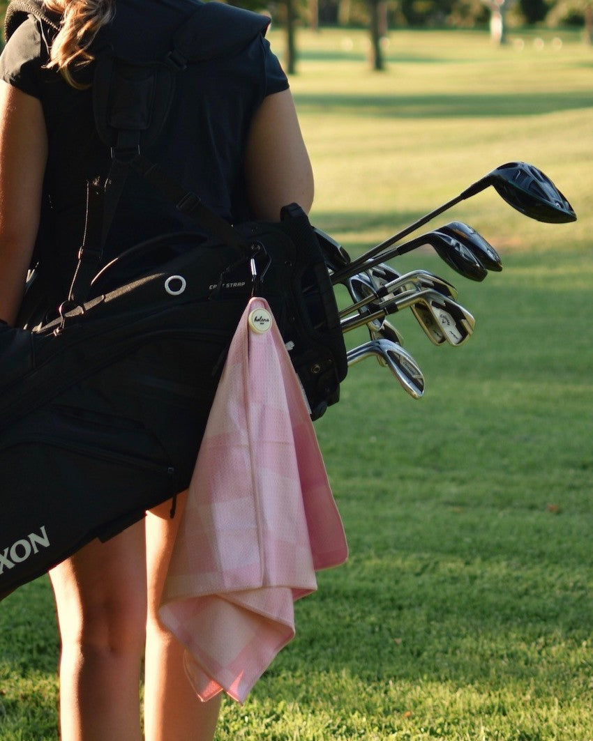 La serviette de golf Blush, avec ses motifs à carreau modernes, est conçue pour vous offrir à la fois style et fonctionnalité. Certifiée Oeko-Tex, elle garantit un produit sûr et respectueux de l’environnement. Son logo aimanté et son mousqueton facilitent son accroche, vous aidant à garder vos clubs propres tout au long de votre partie.